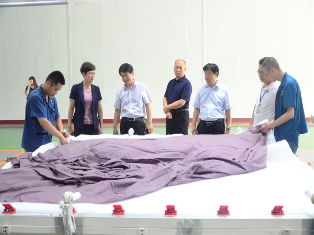 人力行政總監(jiān)孫玉濤介紹了公司發(fā)展的相關情況,工會主席鄭安江就公司在企業(yè)文化建設、員工利益保障等相關工會工作向調(diào)研組進行了詳細匯報。隨后,胡少華一行與公司職工代表面一車間李西洪、家紡成品車間朱永亮和服裝車間溫永霞進行了交流座談,詳細了解了公司在職工培養(yǎng)、福利待遇、權(quán)益維護等方面的具體情況。調(diào)研組一行先后參觀了公司工程技術研究院、創(chuàng)意中心、花布智能生產(chǎn)車間、家紡成品展廳及車間等處。胡少華表示,公司作為紡織印染行業(yè)的龍頭企業(yè),取得的成績有目共睹,并且公司在維護職工權(quán)益、企業(yè)文化建設、提升職工素質(zhì)等方面的工作經(jīng)驗值得借鑒和推廣。
