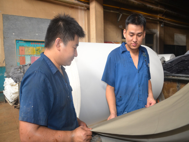 面三車間生產(chǎn)的功能性整理品種較多,使打底機(jī)染色面臨不小的難度。胡國(guó)濤通過(guò)對(duì)設(shè)備進(jìn)行仔細(xì)觀察研究,跟維修師傅反復(fù)討論,在軋車前安裝固定導(dǎo)布軸,解決了軋車前起折子問(wèn)題。再有,在紅外線烘室內(nèi)加入彎輥并調(diào)節(jié)張力,使產(chǎn)品通過(guò)打底機(jī)時(shí)不再“卡脖子”;以產(chǎn)品“棉錦c21*n100d+40d”為例,其一等品率由改進(jìn)前的91%提升到改進(jìn)后的96.5%,而這只是他眾多改進(jìn)成果中的一項(xiàng)。