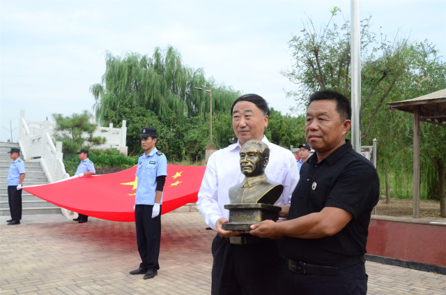 公司黨委書記、董事長(zhǎng)王力民代表公司,接受紀(jì)念園負(fù)責(zé)人曹文濱代表紀(jì)念園捐贈(zèng)的周恩來總理半身塑像。