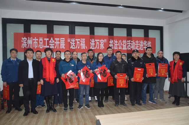 導(dǎo)讀:1月18日,由濱州市總工會(huì)開展的“送萬福、進(jìn)萬家”書法公益活動(dòng)走進(jìn)公司,迎新開筆,為公司員工創(chuàng)作春聯(lián)、寫福,用筆墨送上新春的祝福。