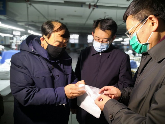 2月7日,濱州市委書記、市人大常委會主任佘春明,濱城區(qū)委副書記、區(qū)長張瑞杰,濱州市工信局黨委書記、局長王道臣,來到公司調研督導疫情防控、口罩生產(chǎn)和企業(yè)復工復產(chǎn)工作。