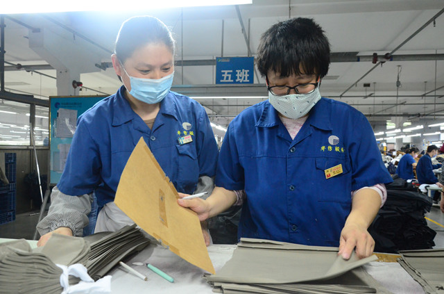 導讀:服裝車間點位工褚翠葉和楊春芳每天的日常工作,是一次次重復將底板對應在需要進行定位的生產(chǎn)材料上,并用記號筆標定生產(chǎn)加工的具體位置。