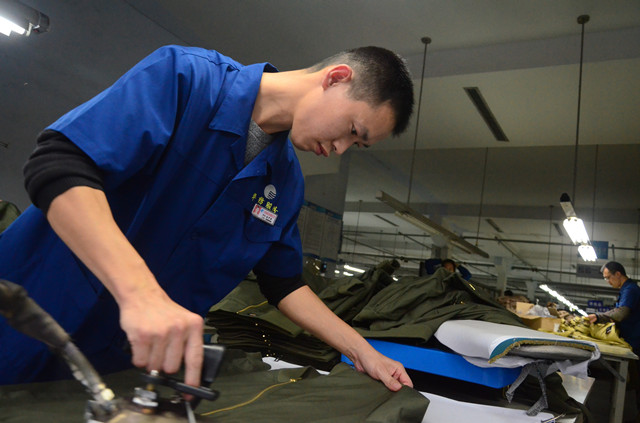 導(dǎo)讀:今年32歲的劉中雪是公司服裝車間的一名整燙工,進(jìn)廠10年來,他每天的工作就是把一件件外銷工裝褲或上衣整燙好。
