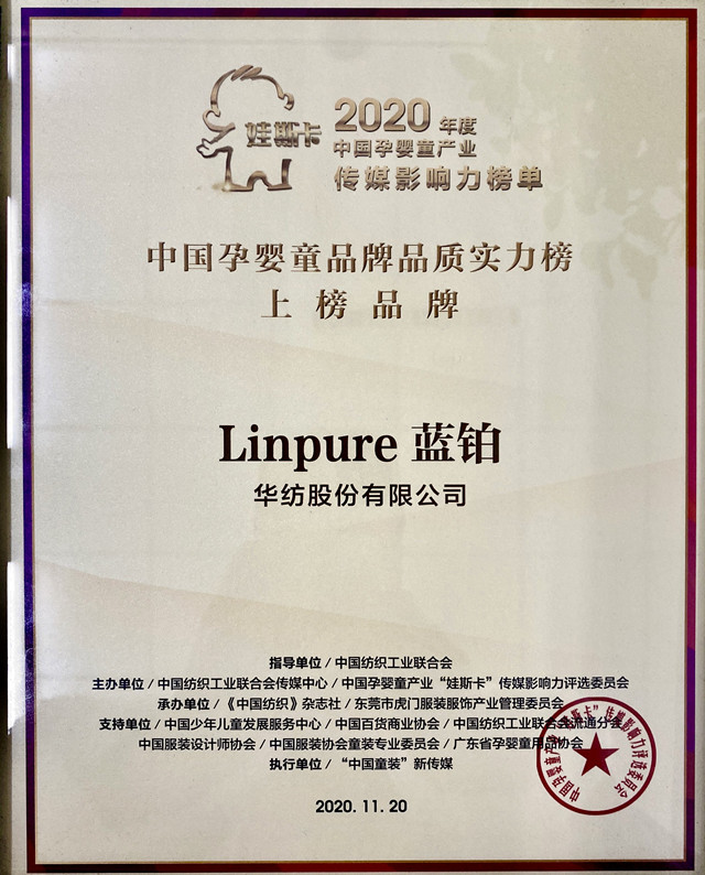 導(dǎo)讀:日前,公司Linpure藍(lán)鉑品牌既獲“娃斯卡”2019年度中國孕嬰童品牌暖心實(shí)力榜后,再獲中國孕嬰童產(chǎn)業(yè)“娃斯卡”傳媒影響力評選委員會頒發(fā)的2020年度中國孕嬰童品牌品質(zhì)實(shí)力大獎(jiǎng)。
