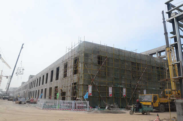 我們在王平帶領(lǐng)下,在新廠房外圍參觀了一遍。他邊走邊說,面料車間整體完成進(jìn)度85%,車間主體工程已經(jīng)建設(shè)完成,設(shè)備基礎(chǔ)在緊鑼密鼓的建設(shè)中,預(yù)計(jì)6月底整體達(dá)到投產(chǎn)狀態(tài),8月底完成全部搬遷;家紡車間整體完成度80%,車間主體工程已經(jīng)建設(shè)完成,鋼結(jié)構(gòu)工程在加緊安裝中,預(yù)計(jì)6月底整體達(dá)到投產(chǎn)狀態(tài),8月底完成全部搬遷;服裝車間整體已經(jīng)全部完成,達(dá)到了整體搬遷條件;污水處理整體完成度95%,車間主體工程已經(jīng)建設(shè)完成,脫水機(jī)房工程尚在緊張建設(shè)中,預(yù)計(jì)4月底可投產(chǎn)運(yùn)行;食堂主體完成度95%,一二層主體工程已經(jīng)建設(shè)完成,預(yù)計(jì)在3月底能達(dá)到投產(chǎn)狀態(tài),三層尚在緊張裝修中,預(yù)計(jì)4月底能達(dá)到投產(chǎn)狀態(tài);助劑加工車間、紙管廠完成度65%,主體工程已經(jīng)基本建設(shè)完成,預(yù)計(jì)6月份達(dá)到投產(chǎn)狀態(tài)。