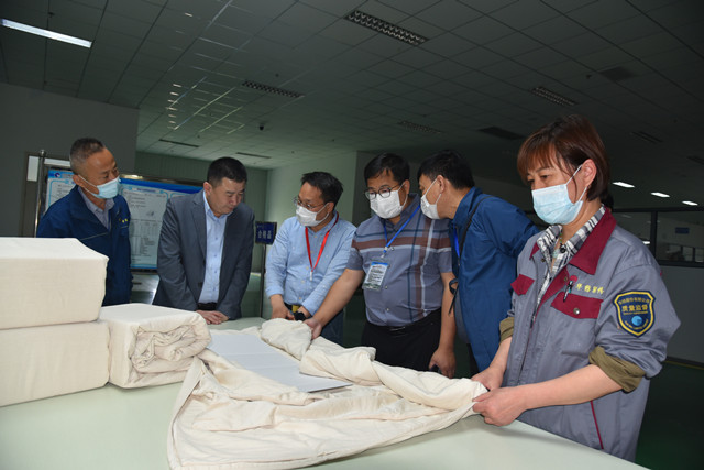 閆英山陪同范雯燁一行參觀了智能綠色工廠建設(shè)項目及花布車間、家紡成品車間、智能立體倉庫、服裝面料分公司、花布分公司、家紡分公司、創(chuàng)意中心、綜合辦公區(qū)域、工程技術(shù)研究院、檢測中心、智云中心等,并對公司整體發(fā)展情況進(jìn)行了介紹。