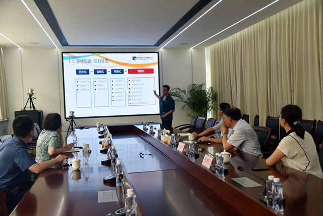 曹學(xué)軍一行先后參觀了花布車間、綜合辦公區(qū)、家紡展廳、研發(fā)創(chuàng)意中心、工程技術(shù)研究院、智云中心等部門和區(qū)域,并聽取了公司推進智能綠色工廠建設(shè)情況的匯報。