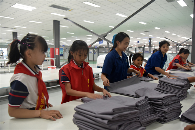 9月23日,濱城區(qū)玉龍湖小學四年級學生在老師帶領下走進公司,實地參觀了公司的生產車間以及部分展廳,現(xiàn)場體驗了家紡產品驗整及包裝等生產環(huán)節(jié),感受勞動的艱辛與快樂。