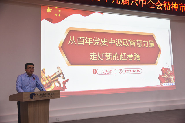 導(dǎo)讀:12月18日,市委宣講團(tuán)成員、市政協(xié)臺港澳僑和外事委員會副主任朱光輝來到公司,對黨的十九屆六中全會精神進(jìn)行專題宣講。