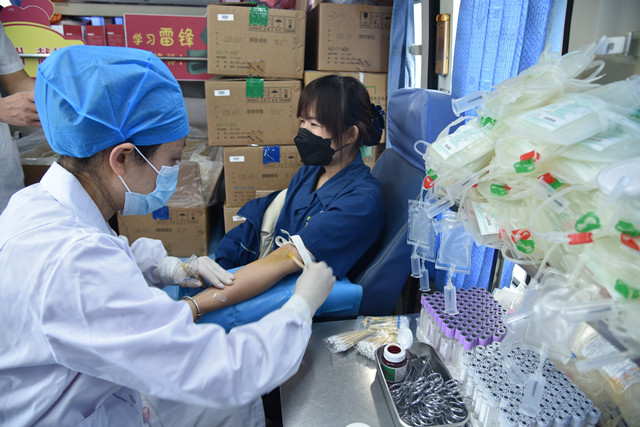 獻(xiàn)血隊(duì)伍中,既有工作多年的老同志,也有剛剛參加工作的新員工。獻(xiàn)血車就位后,員工在濱州市中心血站工作人員的指導(dǎo)下,認(rèn)真填寫獻(xiàn)血登記表、測(cè)量血壓、抽血化驗(yàn),經(jīng)血液檢驗(yàn)合格后開始獻(xiàn)血。“我參加無償獻(xiàn)血的初衷,就是想盡自己的一點(diǎn)力量。”在場(chǎng)參與獻(xiàn)血的一名員工說到。簡(jiǎn)單的一句話,展現(xiàn)的卻是充滿溫暖情感的無私之愛。