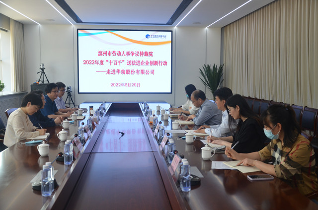 市勞動人事爭議仲裁院副院長翟瑞民、勞宏偉,調(diào)解仲裁二庭庭長孫靜,四級主任科員畢延軍等“送法服務(wù)隊(duì)”一行,在公司副總經(jīng)理趙玉忠、孫玉濤等陪同下,參觀了檢測中心、綜合辦公區(qū)、面料展廳、花布展廳、家紡展廳、創(chuàng)意設(shè)計(jì)中心、工程技術(shù)研究院等區(qū)域。雙方圍繞新形勢下構(gòu)建和諧勞動關(guān)系、推動企業(yè)整體發(fā)展等內(nèi)容,進(jìn)行了深入交流與座談。