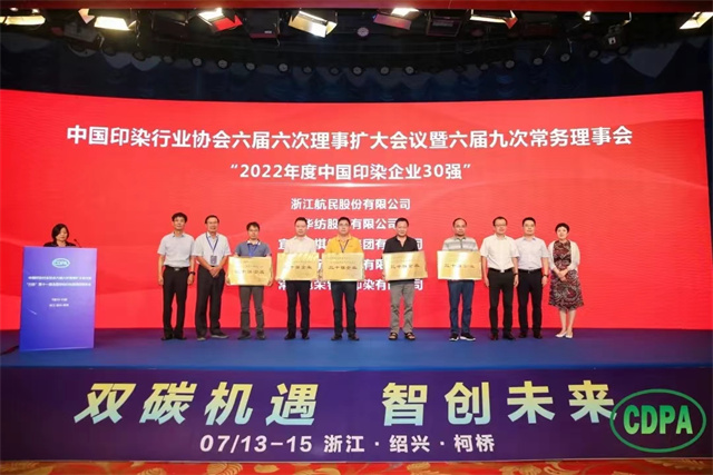 7月14日,中國(guó)印染行業(yè)協(xié)會(huì)六屆六次理事擴(kuò)大會(huì)議暨六屆九次常務(wù)理事會(huì)在浙江紹興召開(kāi)。會(huì)上,中國(guó)印染協(xié)會(huì)發(fā)布了“2022年度中國(guó)印染企業(yè)30強(qiáng)”名單,公司以在多方面的綜合成效躋身這一行列。