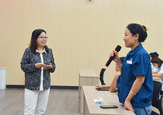 講座過程中,王春梅解讀了在家庭教育中“表達(dá)情緒”代替“用情緒表達(dá)”的內(nèi)涵和意義。在就如何引導(dǎo)孩子正確感悟、培養(yǎng)孩子養(yǎng)成良好習(xí)慣、給予孩子成長(zhǎng)力量等方面,通過講理論、舉實(shí)例、現(xiàn)場(chǎng)討論等形式,深入淺出的為女職工進(jìn)行了分析和授課。