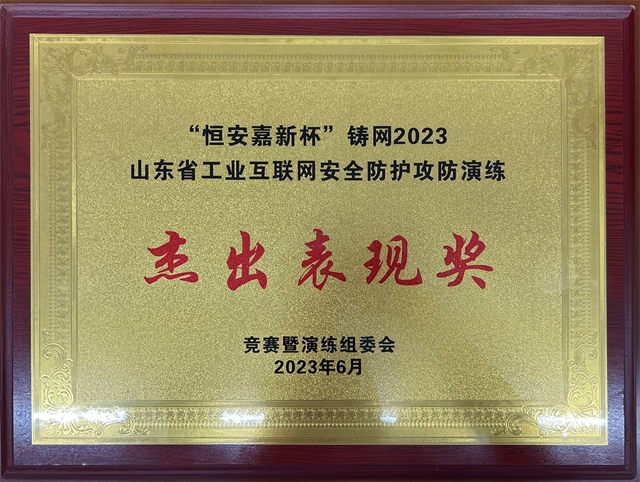 6月19日,由山東省通信管理局組織的“恒安嘉新杯”鑄網(wǎng)2023山東省工業(yè)互聯(lián)網(wǎng)安全防護(hù)技能競賽暨攻防演練在濟(jì)南舉辦,由公司信息中心組成的華紡隊(duì)以卓越的表現(xiàn)獲得由山東省通信管理局頒發(fā)的“杰出表現(xiàn)獎(jiǎng)”。