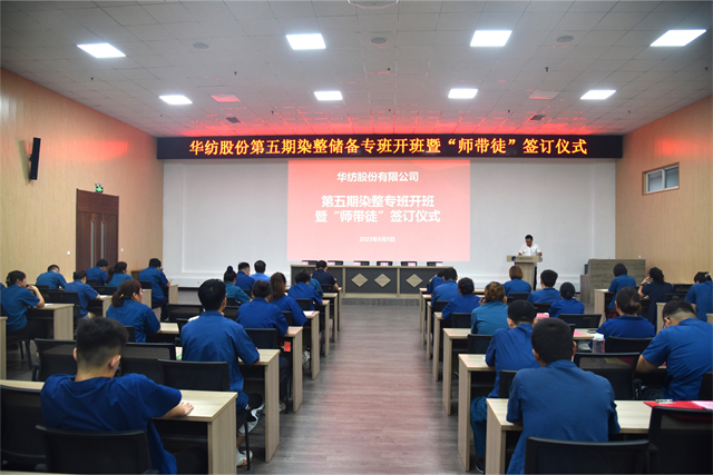 公司舉辦染整儲備專班開班暨“師帶徒”簽訂儀