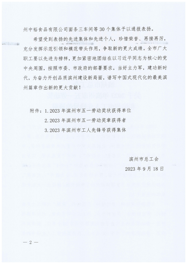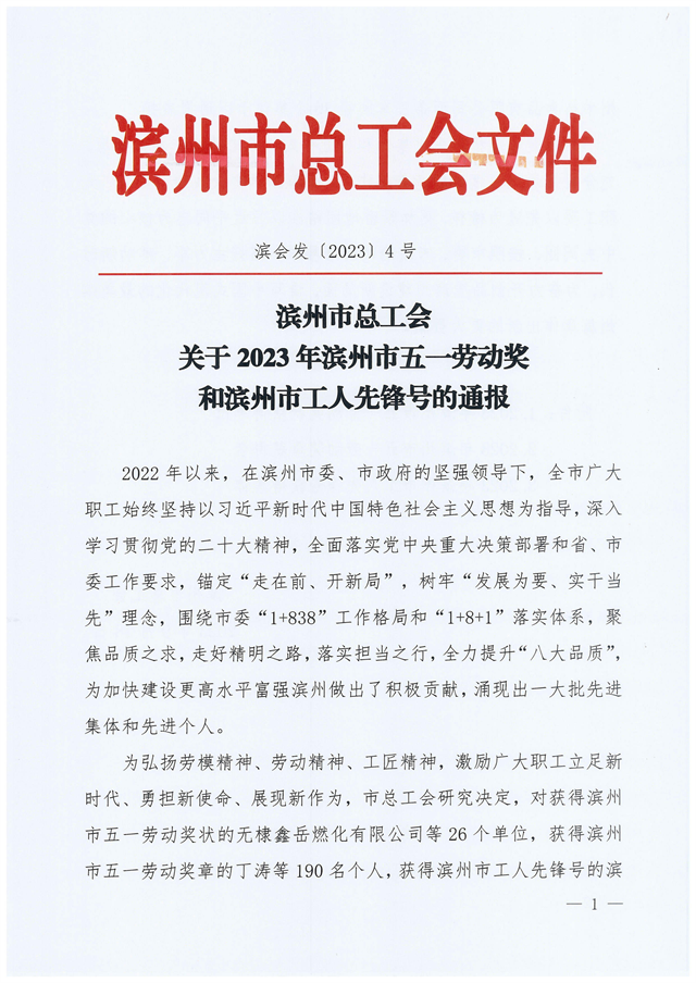 導讀:近日,濱州市總工會發(fā)布了“關于2023年濱州市五一勞動獎和濱州市工人先鋒號的通報”,