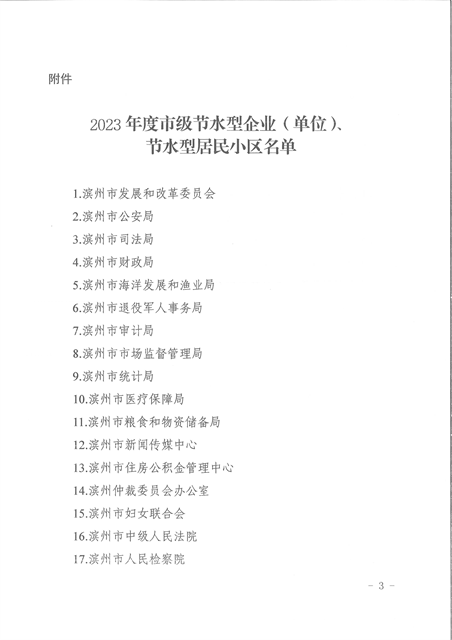 導(dǎo)讀:近日,濱州市城鄉(xiāng)水務(wù)局、濱州市發(fā)展和改革委員會、濱州市工業(yè)和信息化局、濱州市住房和城鄉(xiāng)建設(shè)局、濱州市機關(guān)政務(wù)保障中心發(fā)布了《關(guān)于公布2023年度市級節(jié)水型企業(yè)(單位)、節(jié)