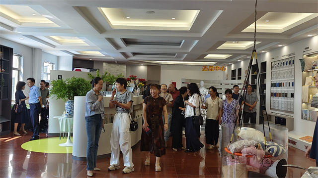在華紡股份黨委書記、董事長盛守祥的帶領(lǐng)下,大家來到華紡老廠區(qū),那里陳列著一幅幅彌足珍貴的歷史照片,它們鐫刻著大家共同奮斗的往昔歲月。在這些影像前,老員工們的思緒仿佛瞬間被拉回到那激情澎湃的年代,熟悉的面容、難忘的瞬間,一一重現(xiàn)眼前,喚起了無數(shù)美好回憶。緊接著,大家又來到華紡股份新廠區(qū),參觀了智云中心、檢測中心、綜合辦公區(qū)、服裝面料公司、花布公司、家紡公司、創(chuàng)意中心、工程技術(shù)研究院等區(qū)域。每一步腳印,皆見證著公司的歷史演進(jìn);每一處細(xì)節(jié),皆彰顯出公司對技術(shù)創(chuàng)新與產(chǎn)品升級的執(zhí)著追求。