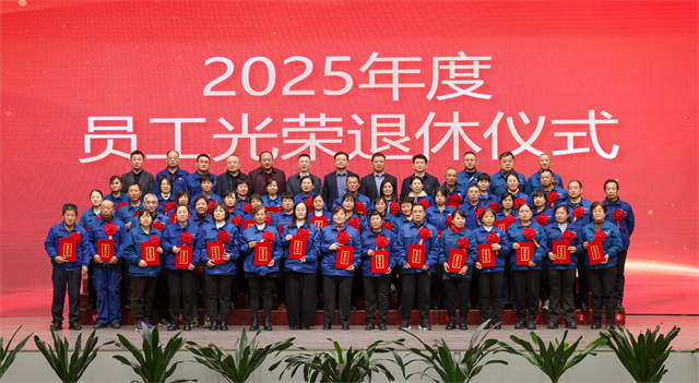 會議為2025年度退休員工舉行光榮退休儀式。公司黨委委員、紀委副書記、副總經(jīng)理孫玉濤宣讀退休員工名單,黨委書記、董事長盛守祥為退休員工代表頒發(fā)榮譽證書。退休員工代表王立松作為退休職工代表發(fā)言,深情訴說數(shù)十載與公司同行的點滴,誠摯送上對公司的衷心祝福。