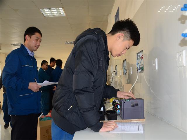 日前,公司在基層開展機電技術人員技能比武基礎上,在公司255名機電技術人員中集中展開了技能大比武活動。這次比武分為機械技能實踐和電氣技能實踐兩個部分,機械技能實踐有“導布輥焊補軸頭”、“減速器拆裝配”、“管道焊接”三項內容;電氣技能實踐有“PLC程序初級操作”、“變頻器裝配操作”兩項內容。公司組織的這次技能比武,也是機電序列技術人員全年考評、考核內容之一。