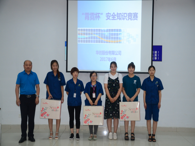 比賽共分為必答題、風(fēng)險題和共答題三部分,經(jīng)過三輪比賽家紡車間代表隊和家紡成品代表隊以300分的成績并列第一,經(jīng)過數(shù)輪加賽仍難分伯仲,最終家紡車間代表隊和家紡成品代表隊以總分380分的成績并列獲得第一名,動力公司代表隊、面一代表隊獲得第二名;面二代表隊、花一代表隊和花二代表隊獲得第三名。