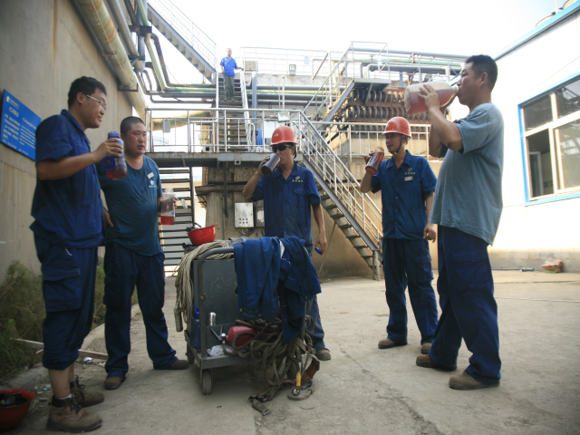 公司污水處理改造工程近來(lái)正在緊鑼密鼓地推進(jìn),大家盯靠在現(xiàn)場(chǎng),實(shí)在太渴了,就咕咚咕咚喝一通綠豆湯。他們的目標(biāo)是:保質(zhì)保量,全力投入,爭(zhēng)取提前完成這項(xiàng)重點(diǎn)工程。