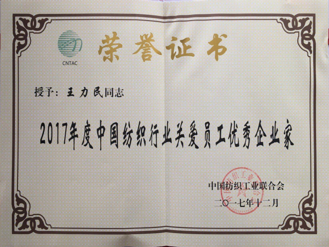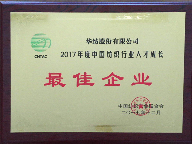 日前,中國紡織工業(yè)聯(lián)合會2017年人才工作大會在濟南召開,會上表彰了人才建設工作先進單位和個人。公司以在人才機制建設、人才培育成長等方面的良好成效,榮獲“2017年度中國紡織行業(yè)人才成長最佳企業(yè)”稱號;公司黨委書記、董事長王力民以對廣大員工及各類人才的關愛情懷,榮獲“2017年度中國紡織行業(yè)關愛員工優(yōu)秀企業(yè)家”稱號。