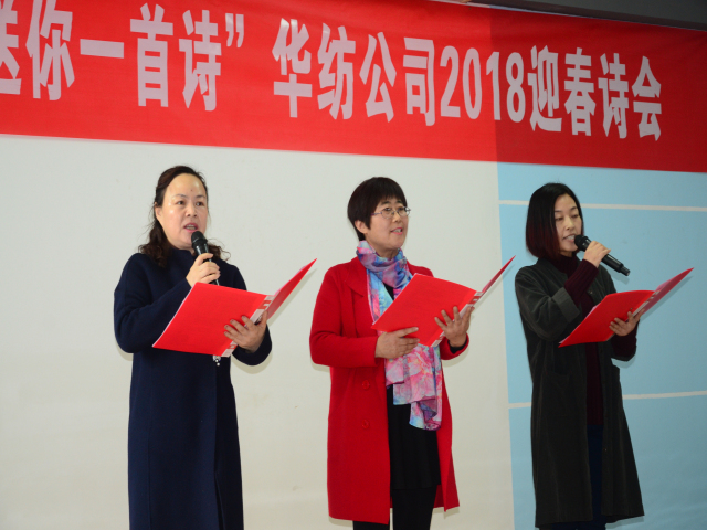 2月1日,公司舉辦了主題為“‘春之聲——春天送你一首詩(shī)’華紡公司2018迎春詩(shī)會(huì)”。公司副總經(jīng)理孫中然及百余名員工參加此次活動(dòng),詩(shī)會(huì)由公司職工讀書會(huì)成員王雯文主持。