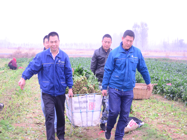 經(jīng)過進(jìn)一步溝通,公司決定采購(gòu)菠菜3000斤,同時(shí)為了減少合作社的成本,公司組織人工和食堂、車隊(duì)的兩輛貨車自行到菜地拉菜,經(jīng)過一上午的整理、裝車,滿滿的兩車“愛心”菠菜駛出菜地,為菜農(nóng)們?cè)诙绽飵?lái)溫暖。