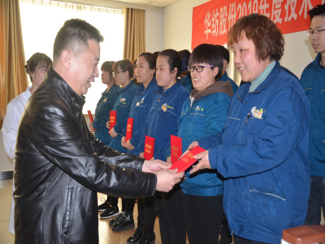 總工程師羅維新宣讀了《關(guān)于對2018年度綜合評比獲獎團(tuán)隊及個人的表彰決定》和《關(guān)于對染整專業(yè)技術(shù)培訓(xùn)班(第七期)劉江等15人準(zhǔn)予結(jié)業(yè)的通報》;黨委書記、董事長王力民為獲得表彰的優(yōu)秀團(tuán)隊面三車間技術(shù)團(tuán)隊頒發(fā)獎狀;總經(jīng)理閆英山為27名優(yōu)秀技術(shù)人員和15名輪訓(xùn)班結(jié)業(yè)人員頒發(fā)相應(yīng)證書。優(yōu)秀技術(shù)人員代表韓延衛(wèi)和優(yōu)秀打樣員代表張齊先后發(fā)言。