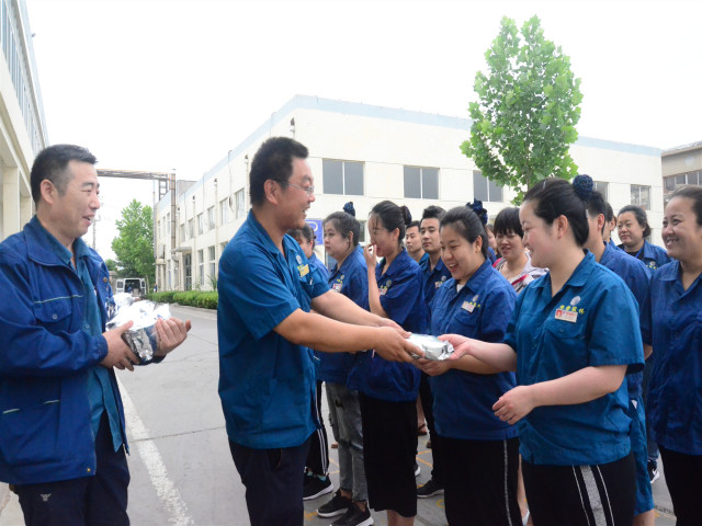 進(jìn)入5月下旬以來,魯北地區(qū)氣溫逐漸升高,生產(chǎn)企業(yè)的防暑降溫工作提到了議事日程。公司為做好此項(xiàng)工作,采取多措并舉,在最大限度改善生產(chǎn)作業(yè)環(huán)境的同時(shí),為員工發(fā)放夏季工裝等用品,加大向一線生產(chǎn)車間發(fā)送西紅柿湯、綠豆湯等降溫飲品,以確保高溫時(shí)節(jié)員工的體能需要和身心健康。